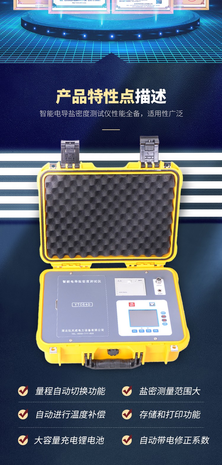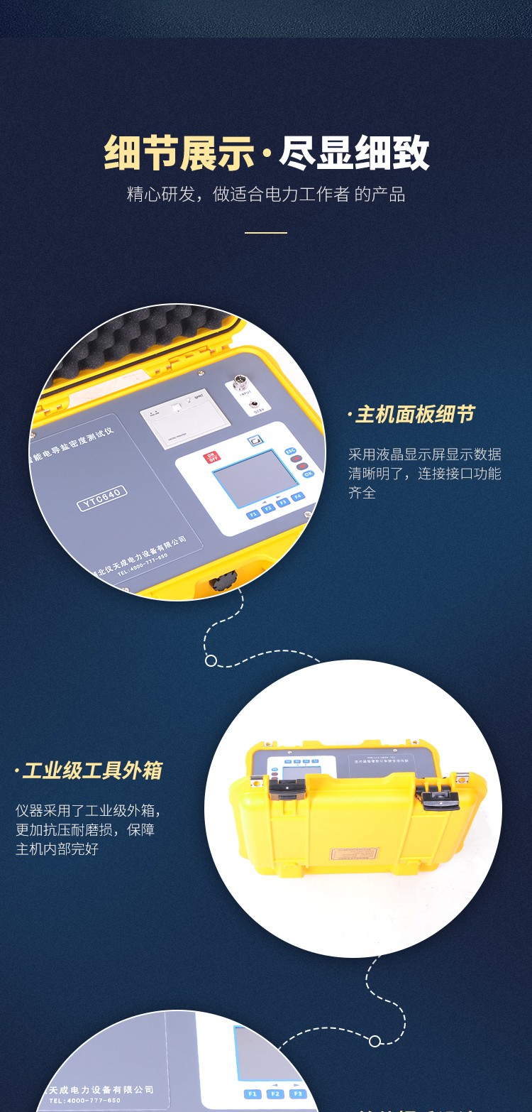 YTC640智能電導鹽密度測試儀是針對電力系統(tǒng)防污閃檢測而研制的,用于測量絕緣子表面等值附鹽密度(以下簡稱“鹽密”)的專用測量儀器,同時還可以測量溶液的電導率和溫度。整機以其測量精度高、讀數(shù)直觀、測量范圍大、使用方便等特點廣泛地應(yīng)用于電力、教學、科研及其它相關(guān)行業(yè)。