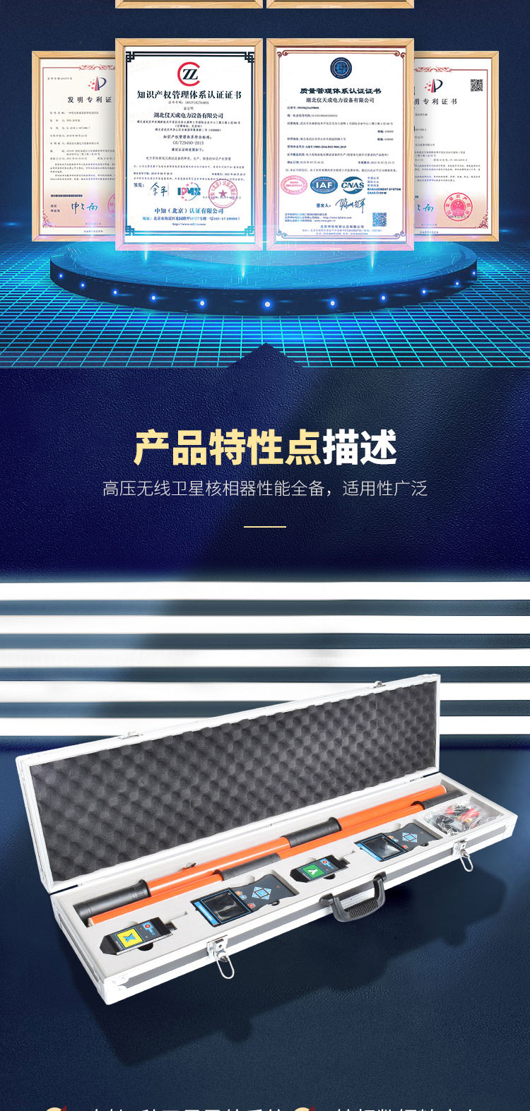 3、測(cè)試功能強(qiáng),空曠地面普通核相距離可達(dá)160m,衛(wèi)星授時(shí)核相距離大于500km,能對(duì)10V~550kV的電壓線路全智能核相,也可用于高壓線路和完全密封的環(huán)網(wǎng)柜低壓感應(yīng)點(diǎn)核相,