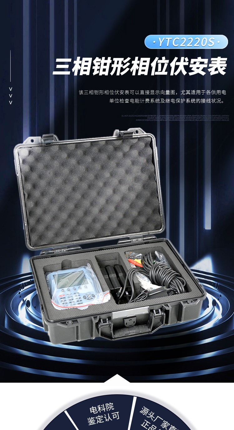 YTC2220S三相數(shù)字相位伏安表是我公司精心研制的一款專為現(xiàn)場(chǎng)測(cè)試的多功能、數(shù)字式、智能化儀表,具有高精度、高穩(wěn)定、低功耗、使用方便等特點(diǎn)??梢栽诒粶y(cè)回路不開路的情況下,同時(shí)測(cè)量三相交流電壓、電流、電壓間相位、電流間相位、電壓電流間相位、頻率、相序、有功功率、無(wú)功功率、視在功率、功率因數(shù)、電流矢量和,判別變壓器接線組別、感性、容性電路,測(cè)試二次回路和母差保護(hù)系統(tǒng),讀出差動(dòng)保護(hù)各組CT之間的相位關(guān)系,檢查電度表的接線正確與否,檢修線路設(shè)備等,為用電檢查人員提供一種安全、準(zhǔn)確、便捷的新型電力儀表。