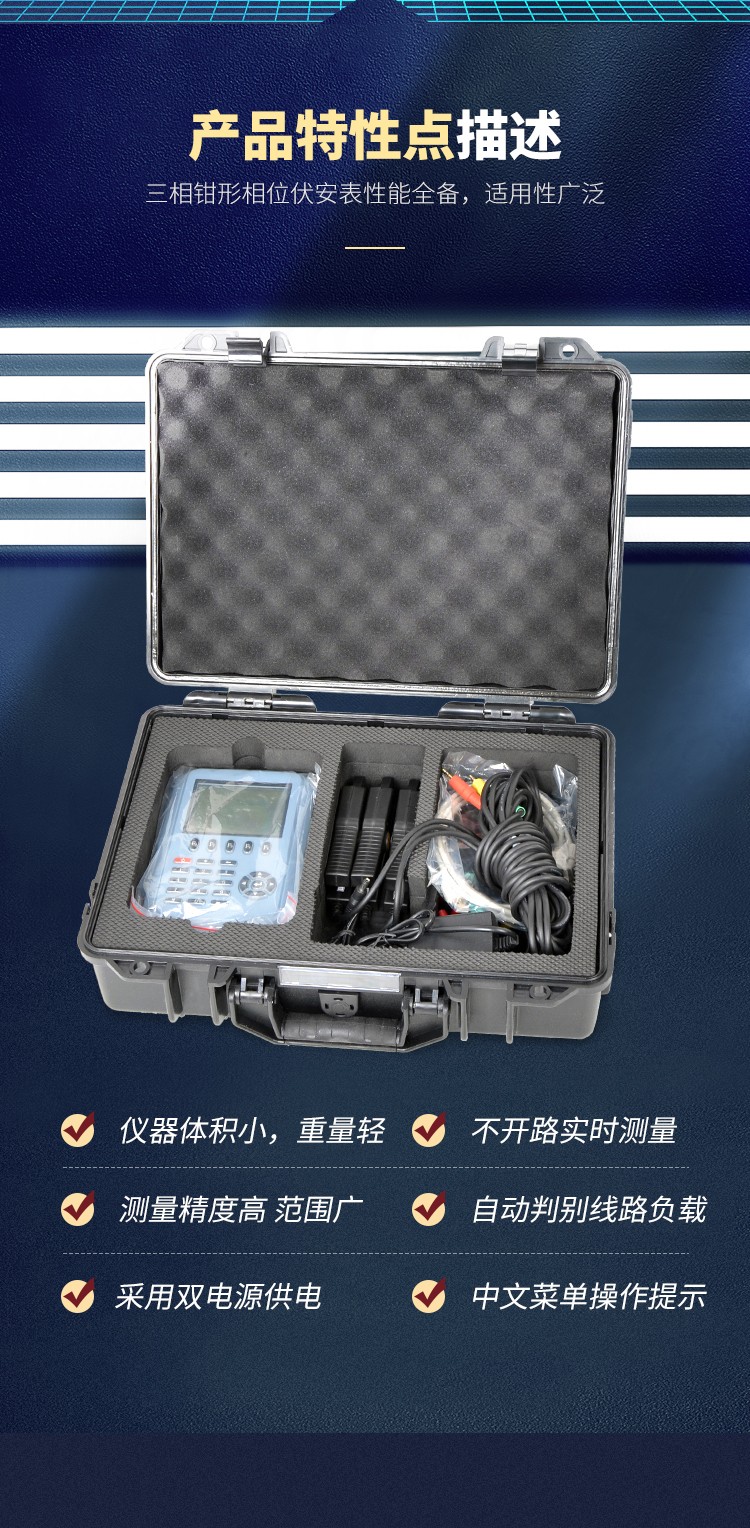 3. 小電流1.5mA測(cè)量相位,非常適用于新裝用戶投運(yùn)后無(wú)負(fù)荷時(shí)檢查接狀況;
