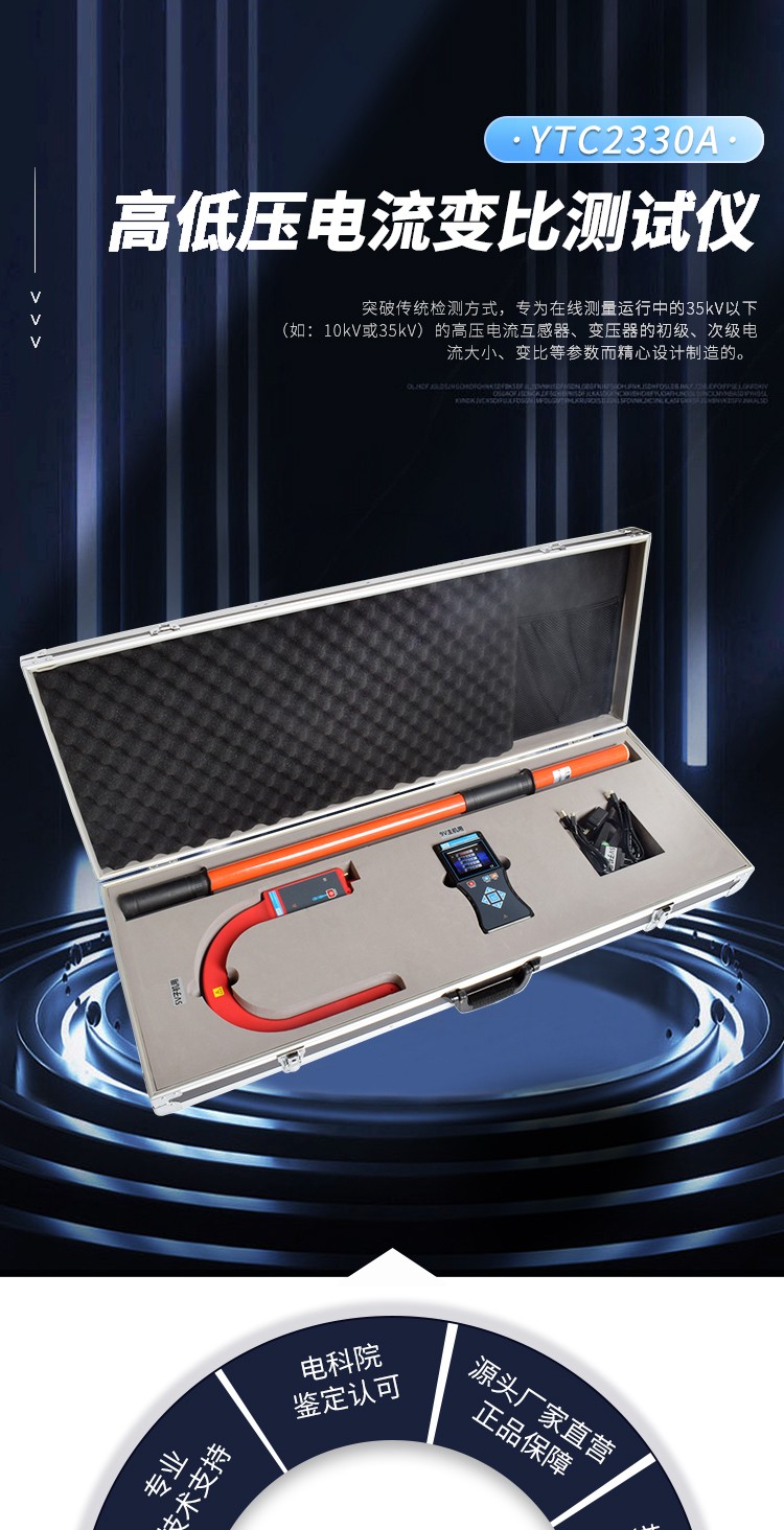 YTC2330A高低壓電流變比測試儀由一次高壓鉤式檢測儀、一次低壓柔性電流鉗、接收器(主機(jī))、二次電流鉗、絕緣桿等組成。廣泛應(yīng)用于變電站、發(fā)電廠、工礦企業(yè)以及檢測站、電工維修部門進(jìn)行電流檢測和野外電工作業(yè)等。