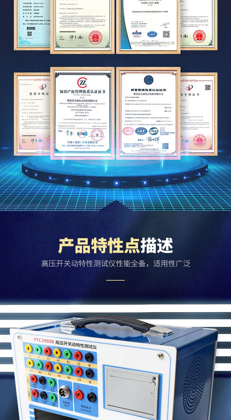 YTC3980B斷路器特性測試儀采用液晶大屏幕顯示,測試結(jié)果可直接打印,該斷路器動特性分析儀具有智能化、功能多、數(shù)據(jù)準(zhǔn)確、抗干擾性強、操作簡單、體積小、重量輕、外觀美等優(yōu)點。