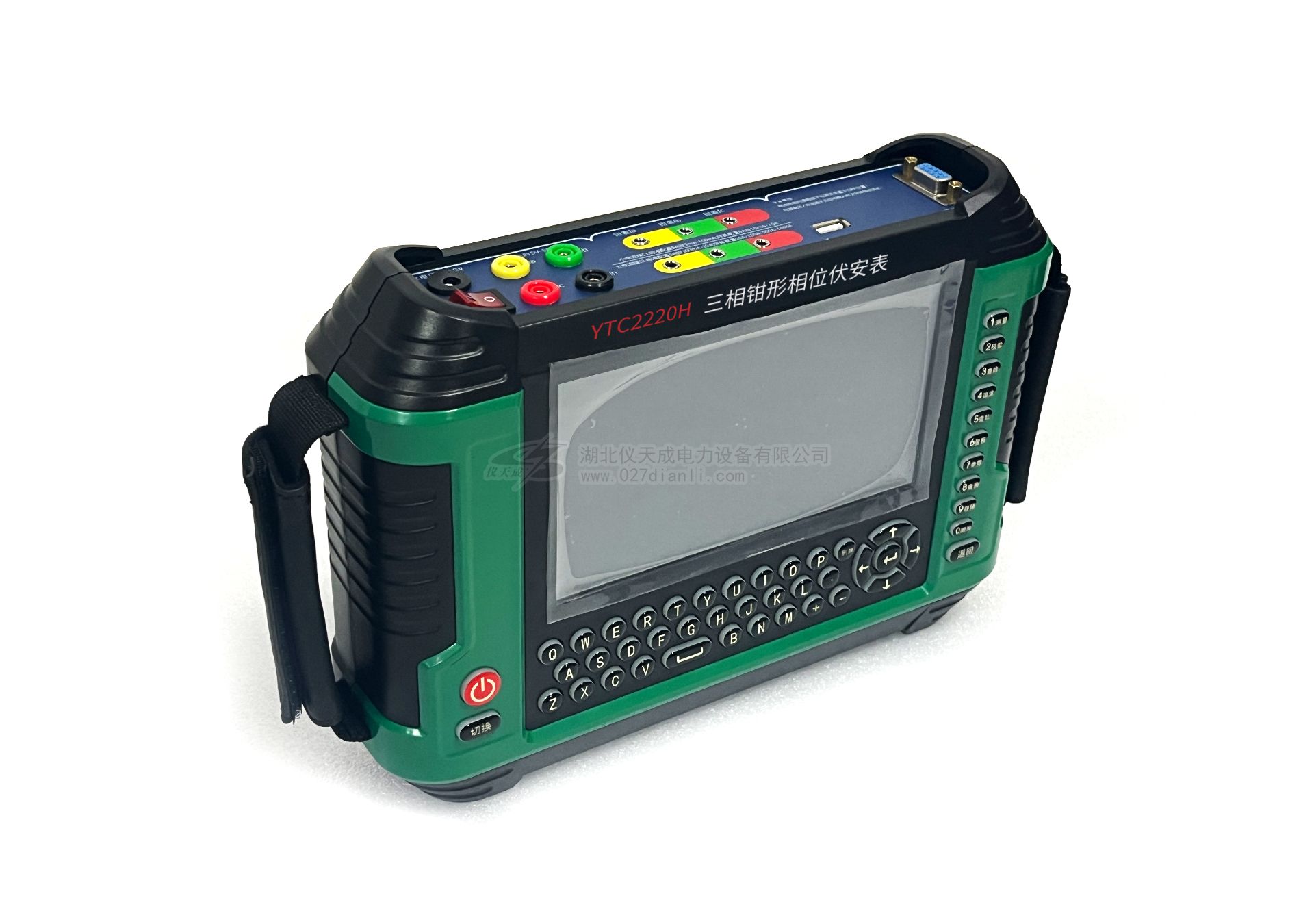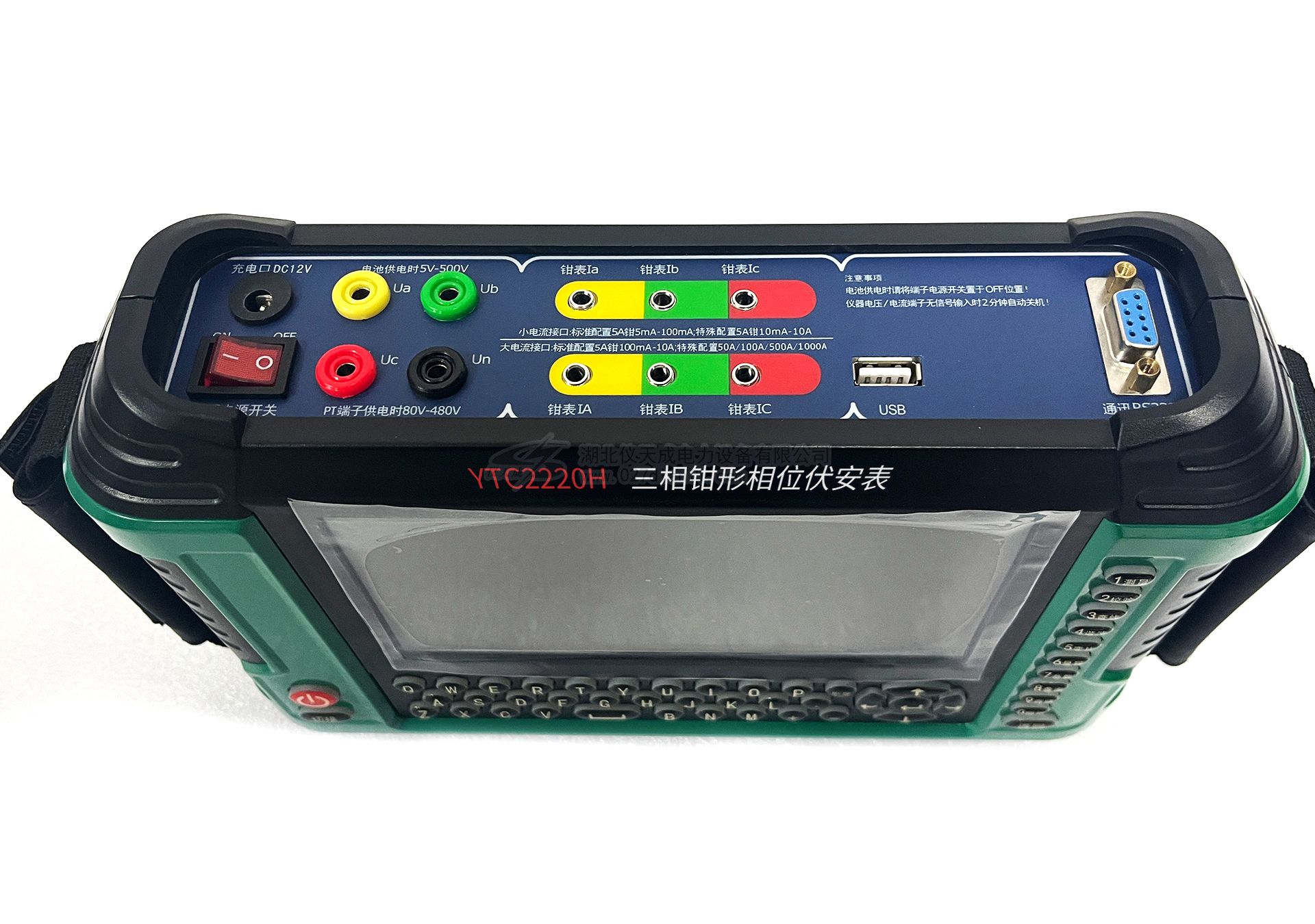 YTC2220H 三相鉗形相位伏安表是新一代精密交流電參數(shù)測量儀器,主要用于現(xiàn)場檢測各種交流電參數(shù)及電力線路接線狀況。以直接交流采樣法實現(xiàn)工頻電參數(shù)測量(如電壓、電流有效值,有功功率、無功功率、視在功率、工頻頻率、功率因數(shù)、相位關系)可以直接顯示兩圈變高低端三路電壓六路電流的六角向量圖,顯示三相計量二次回路接線圖,該儀器集多功能為一身,多種測量功能,是用電單位檢查電能計費系統(tǒng)及繼電保護二次回路接線的重要檢測工具。