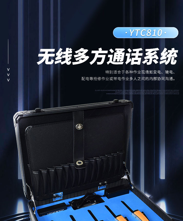 YTC810無線多方通話系統(tǒng)是研發(fā)的新一代電力檢修用現(xiàn)場指揮通訊裝置,由終端和藍(lán)牙耳麥組成。其工作原理是:用戶佩戴藍(lán)牙耳麥,與終端通過藍(lán)牙無線傳輸話音;多個終端之間通過專用無線建立一個遠(yuǎn)距離通信網(wǎng)絡(luò),從而使多個遠(yuǎn)距離的用戶可像面對面一樣的通話。