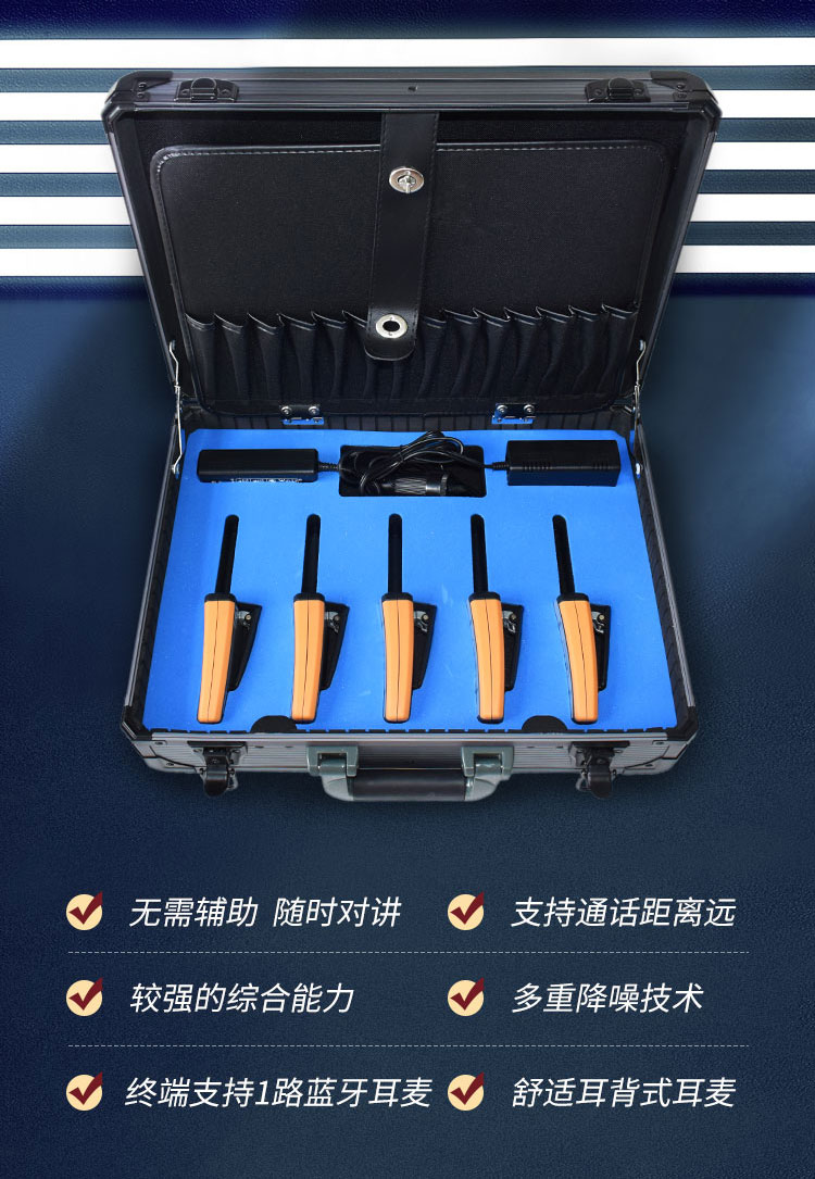 2、標(biāo)配4個終端,4個藍(lán)牙耳麥;允許4個用戶同時講話所有用戶都能聽見。