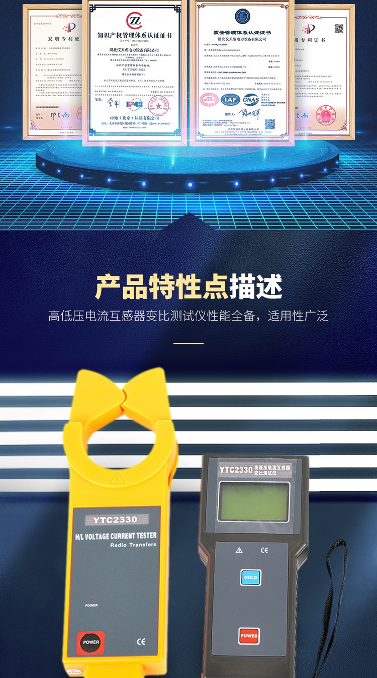 YTC2330高低壓電流互感器變比測試儀可在不斷電、不改線的情況下檢測35KV及以下的計量裝置用電流互感器的變比和極性,從而有效的防止高壓計量用戶采取更換高低壓電流互感器或電流互感器銘牌以及改變二次線極性達(dá)到少記費(fèi)的竊電行為。YTC2330高低壓電流互感器變比測試儀使用簡便、易于攜帶、安全系數(shù)高,是用電稽查人員使用非常順手的檢測工具。
