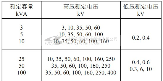b)額定容量與高、低壓繞組電壓配合建議采用表1的推薦值,特殊要求時(shí),由制造廠與用戶雙方協(xié)商確定。