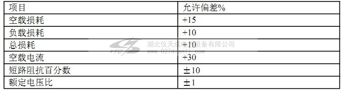 c)無局放試驗(yàn)變壓器的空載電流、空載損耗、短路阻抗百分?jǐn)?shù)、負(fù)載損耗、額定電壓比的允許偏差應(yīng)不超過表4的規(guī)定。