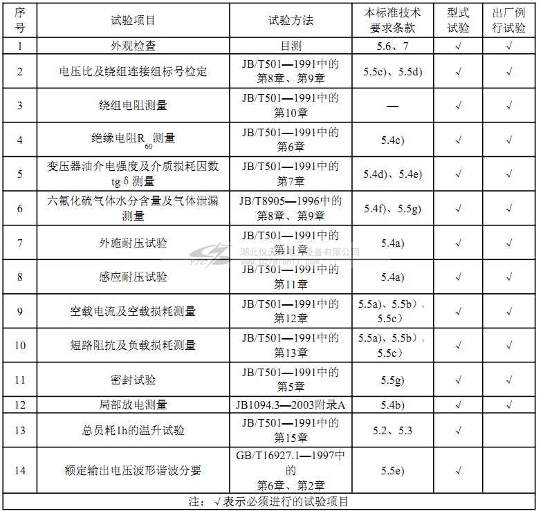 b)制造廠應(yīng)在企業(yè)標(biāo)準(zhǔn)或技術(shù)條件中提出無局放試驗(yàn)變壓器的空載電流、空載損耗、短路阻抗百分?jǐn)?shù)、負(fù)載損耗和額定電壓比規(guī)定值。制造廠也可與用戶協(xié)商提出這些參數(shù)的協(xié)議值。