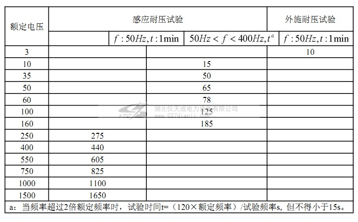 a)高、低壓繞組、測量繞組電氣絕緣強(qiáng)度按表2及表3規(guī)定;