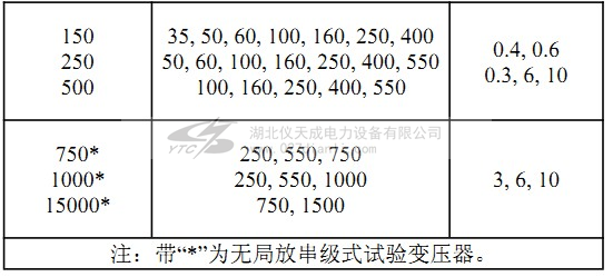 a)單臺無局放試驗(yàn)變壓器的短路阻抗百分?jǐn)?shù)為4%~12%。串級式無局放試驗(yàn)變壓器的短路阻抗百分?jǐn)?shù)應(yīng)不大于18%。在表1中末包含容量的串級式無局放試驗(yàn)變壓器的短路阻抗由制造廠和用戶協(xié)商確定。單臺和串級式無局放試驗(yàn)變壓器空載電流不大于額定電流的10%。