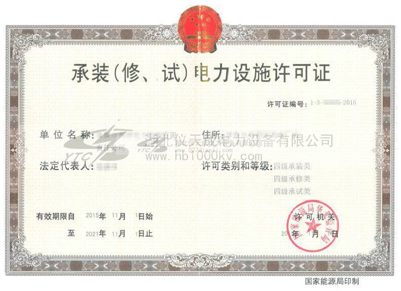 電力承裝承修承試資質(zhì)一級、二級、三級、四級、五級許可證書,是國家電力監(jiān)管委員會對于能夠?qū)π略O(shè)備安裝、設(shè)備維護(hù)和護(hù)理、設(shè)備的預(yù)防性試驗的企業(yè)頒發(fā)的資質(zhì)許可證書, 取得許可證的單位依法開展活動,受法律保護(hù)。